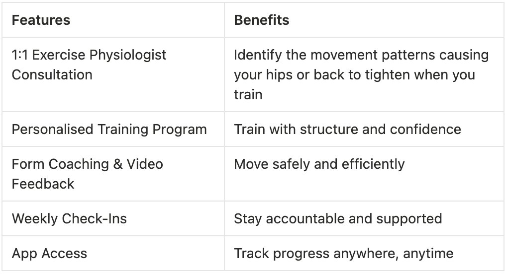 đź’ˇSquat and lift without hip or back tightness - so your training finally feels strong and supported again.